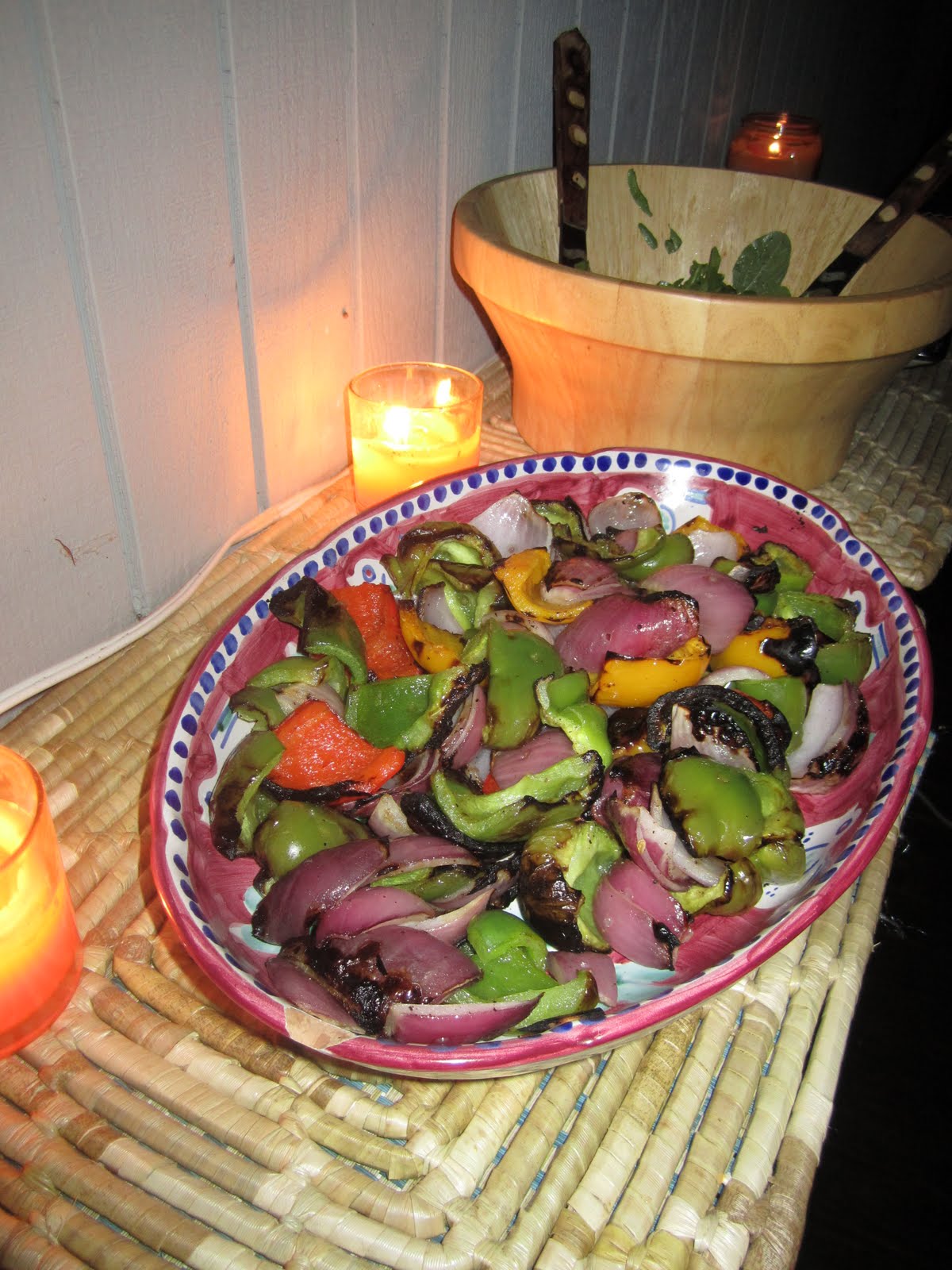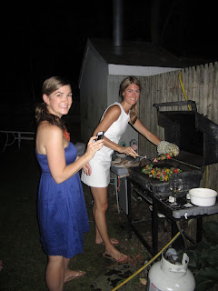 While most weekends have been go go go, beach, post-beach drinks, dinners out, bars, we recently had a chance to slow down and actually enjoy our summer house. It was too hot for the beach, so we enjoyed lounging by our pool by day, taking breaks from the sun to go inside and make a quick lunch (pesto pasta with broccoli) or and afternoon snack (brownies). Saturday night, we decided to go all out and grill for ourselves. Now, I am a complete novice at grilling, I’ve watched my parents do it for years, but have never had a reason to learn (we don’t exactly have outdoor grilling space in the city). Luckily this was a gas grill, and I had some backup, and there were very clear directions, and somehow we managed to follow them. Our chicken, shrimp and veggie kabobs turned out perfectly. And went so well with our arugula and Parmesan salad, and to finish off, more of those brownies for dessert. So simple, but a meal that we don’t often get to cook for ourselves in the city. I ran out to pick up some wine, and when I came back, the table was set with beautiful hydrangeas fresh from the garden, and tea lights lined the entire pool. It was a perfect summer evening full of good food, friends, and lots of laughter, my favorite kind of night!