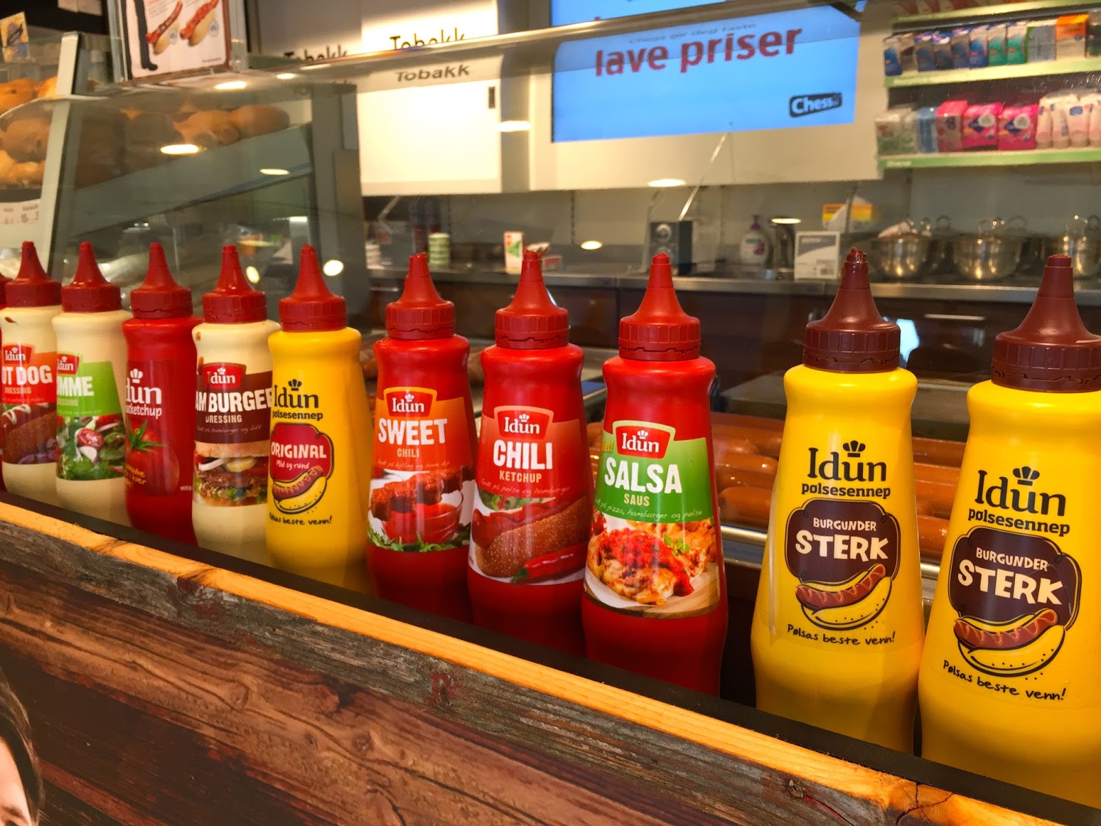 | No shortage of condiments at the equivalent of 7/11, they take their hot dogs very seriously! |