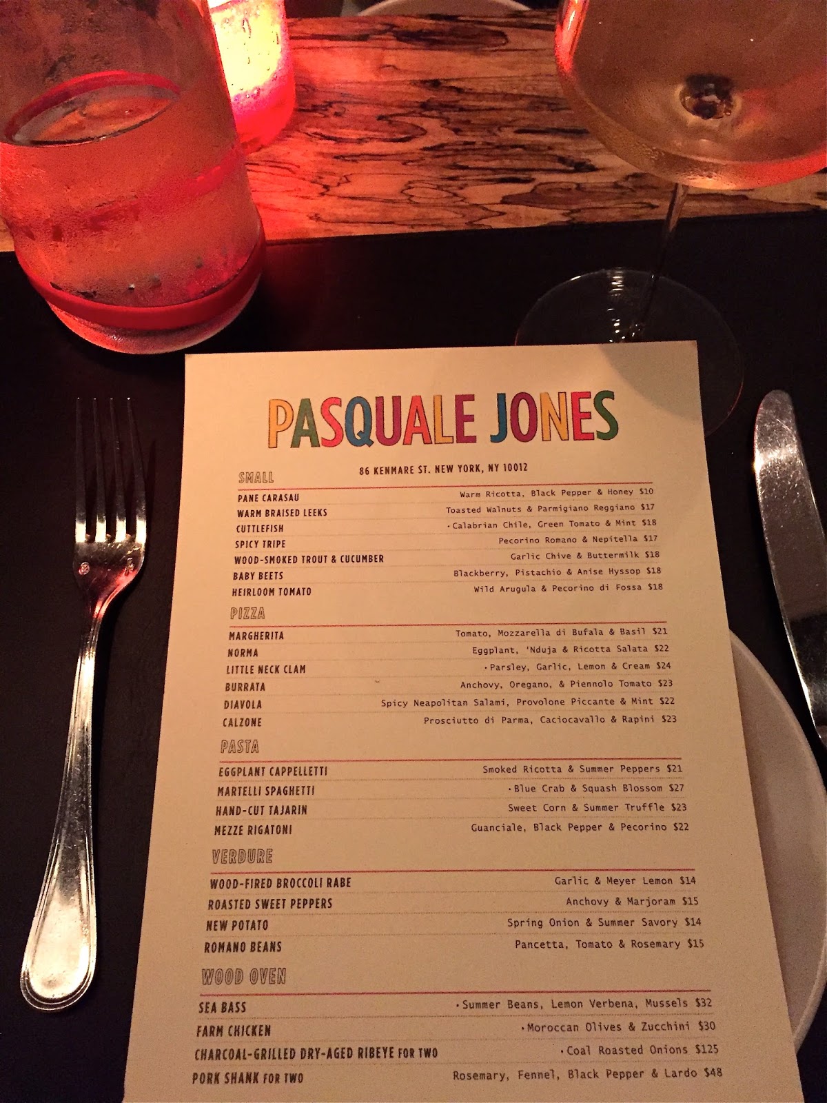 Pasquale Jones is employing the no-tipping philosophy, which I will admit, felt a little uncomfortable when our waiter dismissed us for asking about the specials of the evening. He eventually warmed up, but overall I felt like prices were reasonable on certain items (pizza at $22 feels normal) but then felt incredibly high on others (a bowl of beets for $18). Knowing this wine retails for $14 made it slightly hard to swallow paying $55, but at the end of the meal, everything seemed to even out to normal pricing had we ordered and tipped on our own.