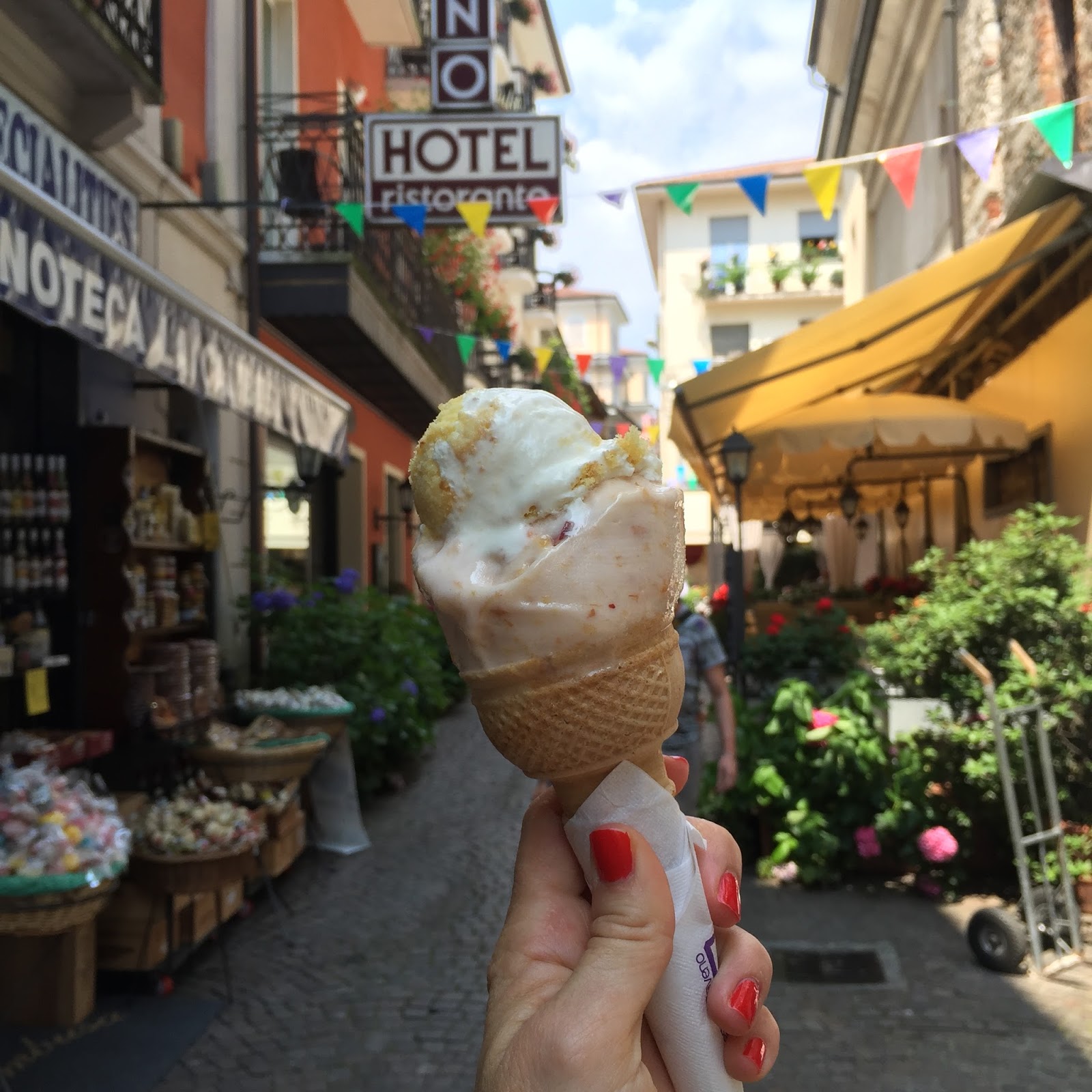We ventured out our second afternoon to Menaggio via the little tourist train. We did a quick loop of the town, had a delicious pizza lunch, grabbed a gelato and hightailed it back to the pool. Word of warning, almost every shop closes for siesta between 12-2 so plan accordingly. We had the intention of picking up picnic supplies for a poolside dinner and we were lucky to make it to the grocery store for cheese before they closed.