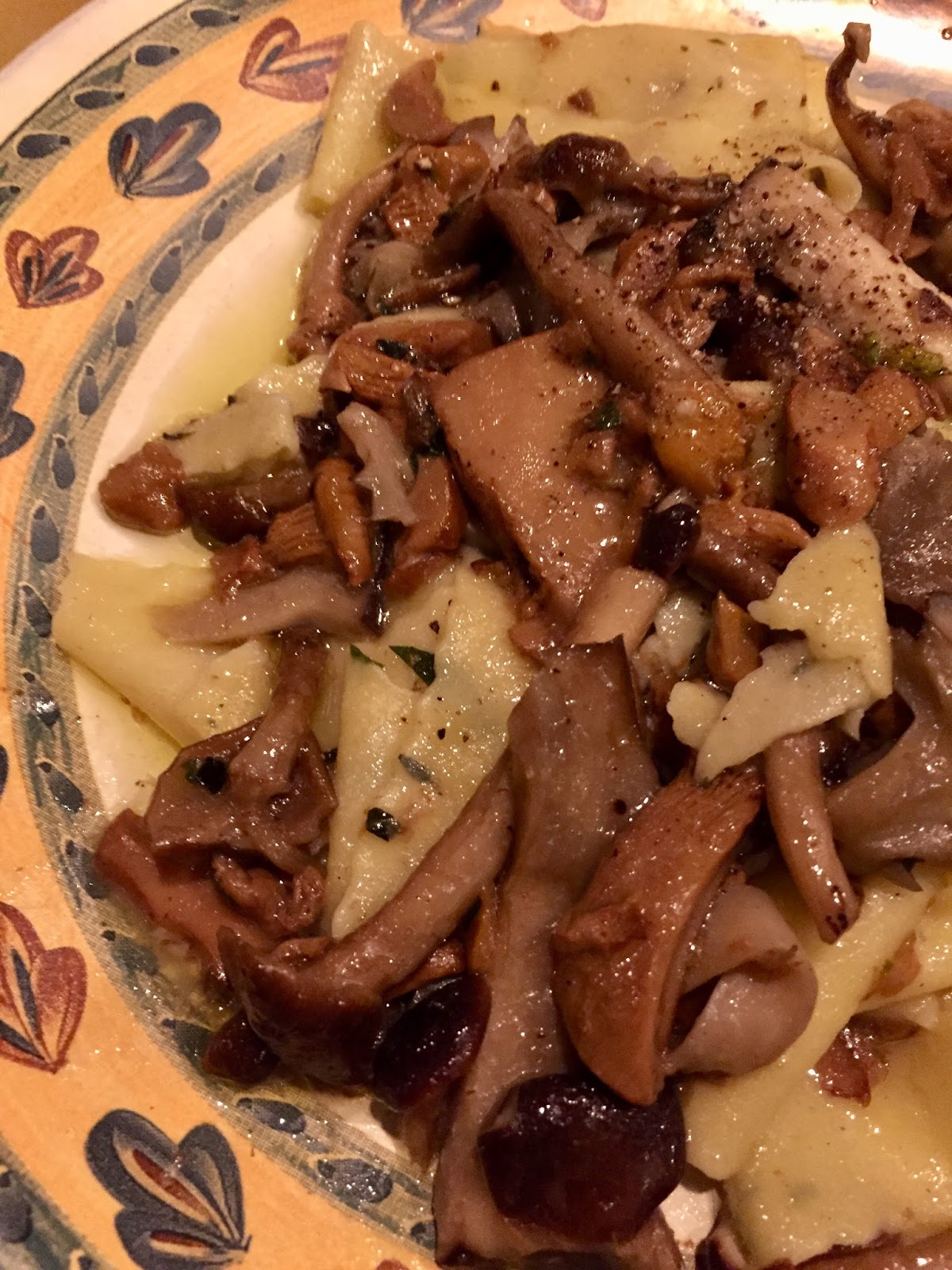 | Thyme maltagliati “ai funghi” – translates to leftover scraps pasta with a delicious mix of mushrooms! |